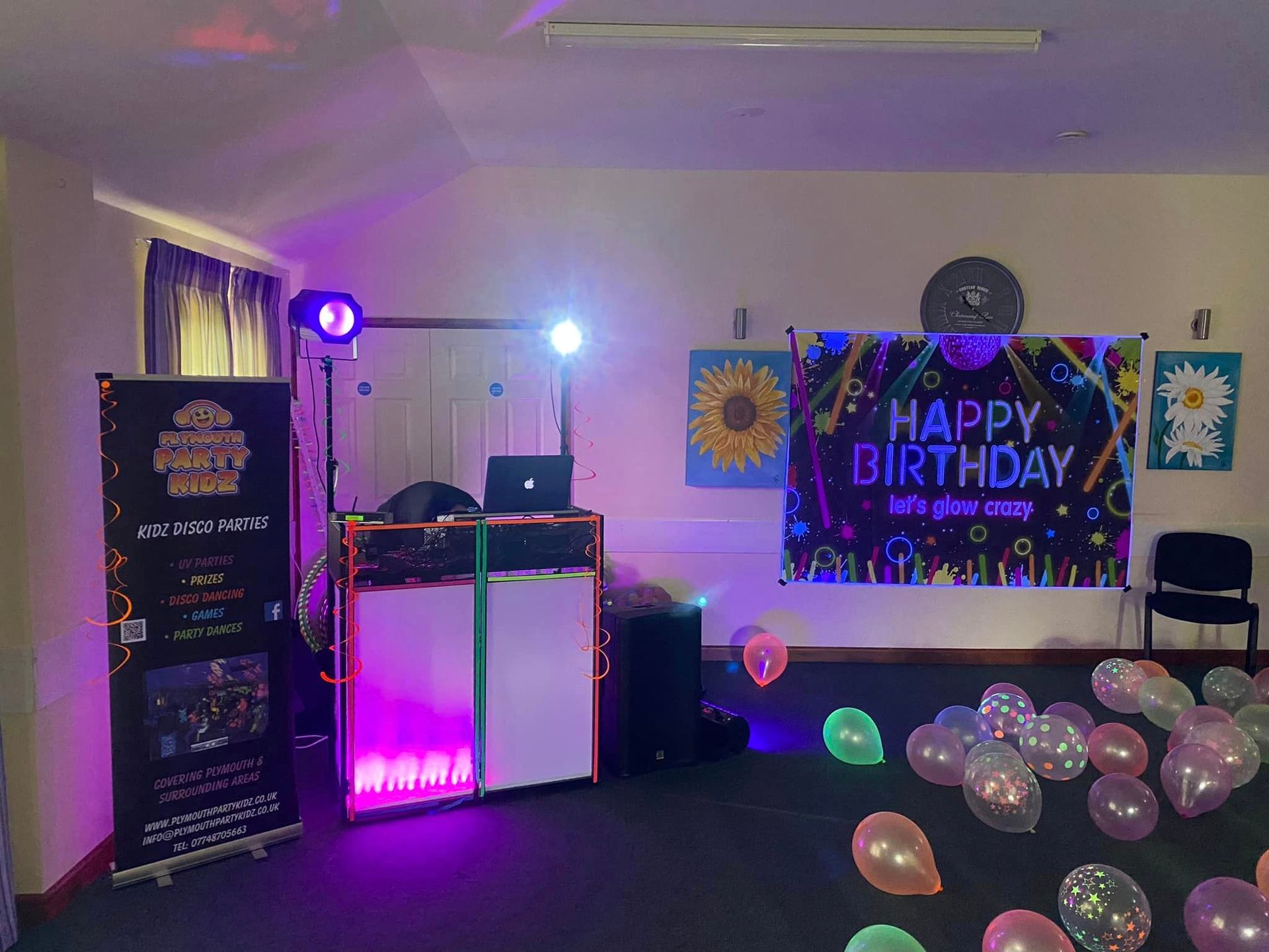 Our UV/Glow Parties are becoming one of the most popular parties we provide. We supply the UV Purple Lights along with our disco set up and party games.